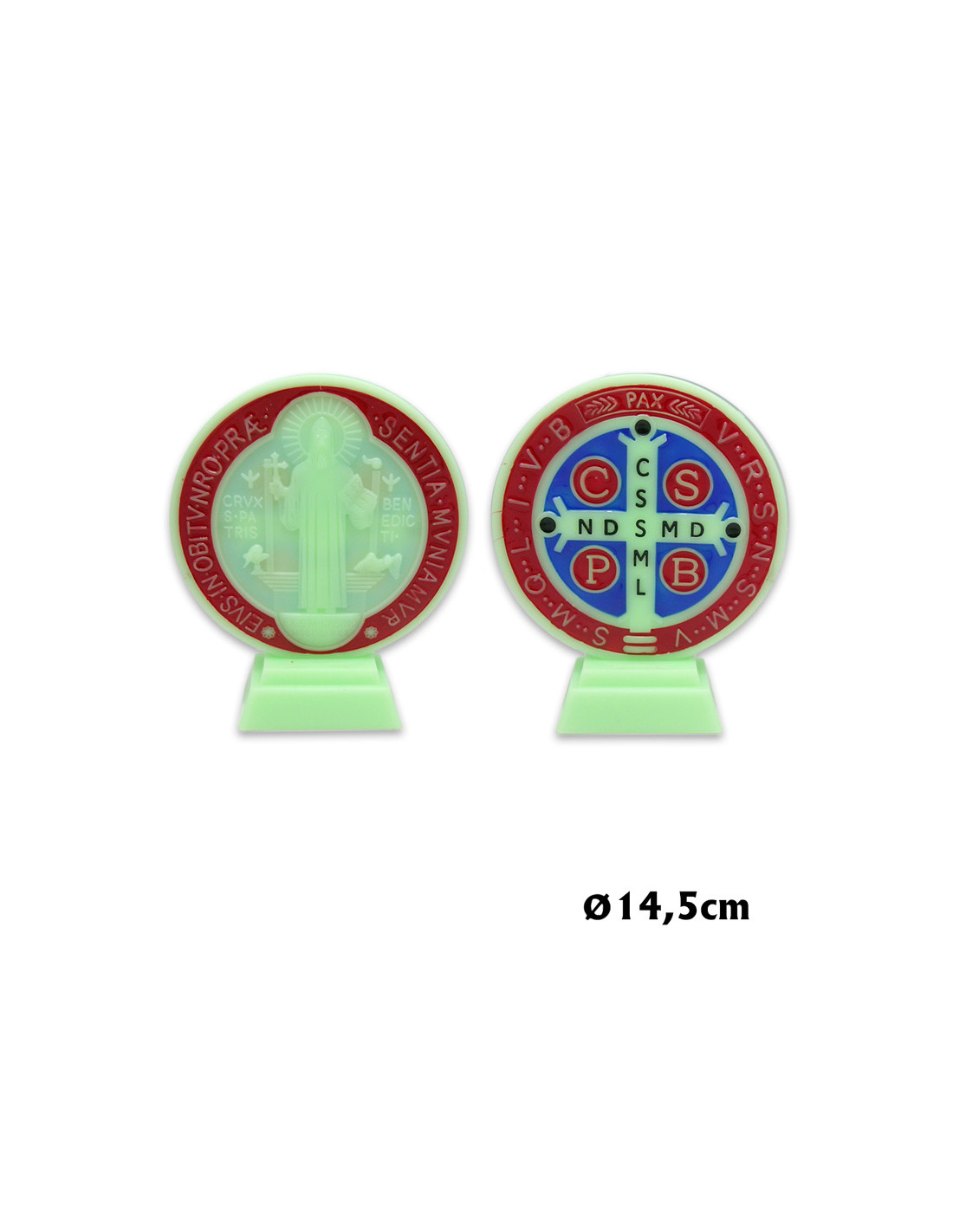 Medallon San Benito 18Cm Plastico Fosforescente Con Esmalte Y Base
