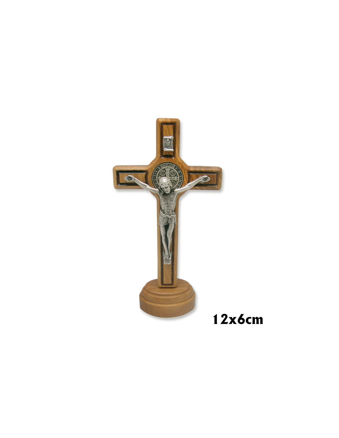 Cruz San Benito Madera Olivo Con Base 12. 5Cm Con M Y Cristo Metal