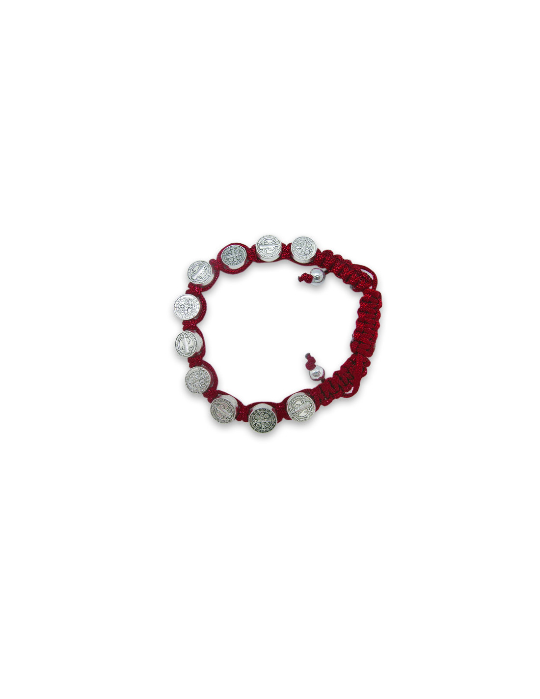 Pulsera Cuerda San Benito Con Medallas Metal 9Mm Color Burdeos Fin