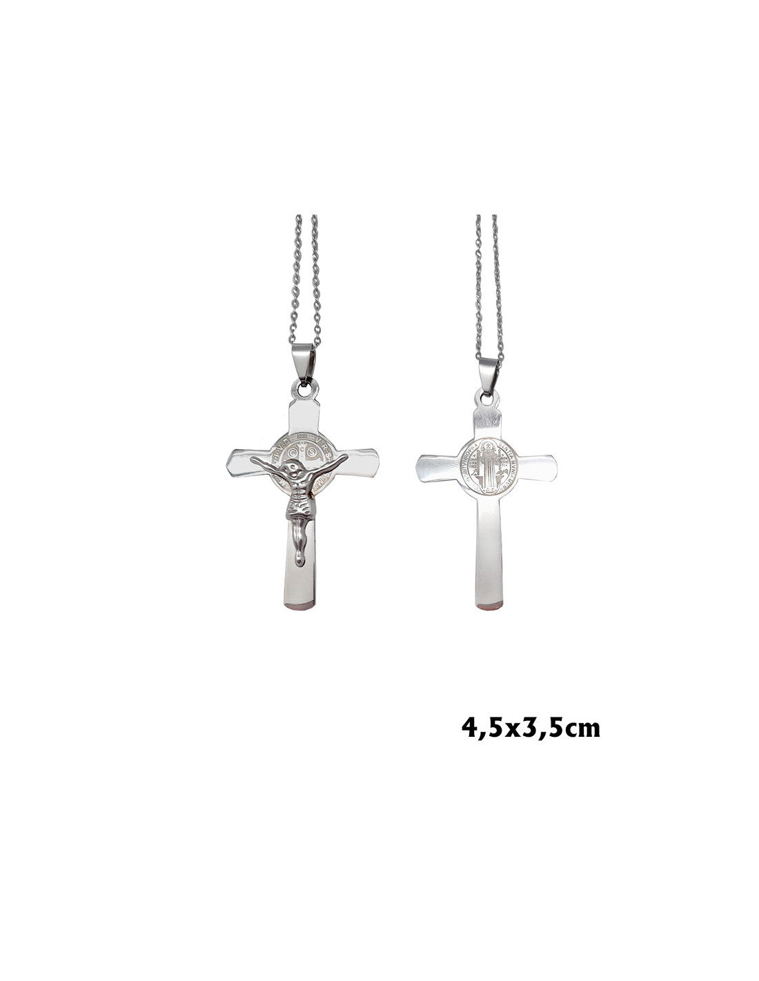 Cruz San Benito Acero 45X35mm Con Cadena De Acero