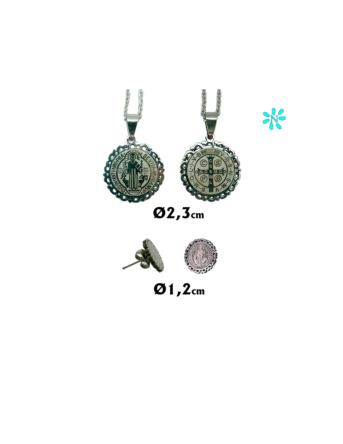 Juego Colgante Redondo 2. 3Cm Y Pendientes Acero San Benito