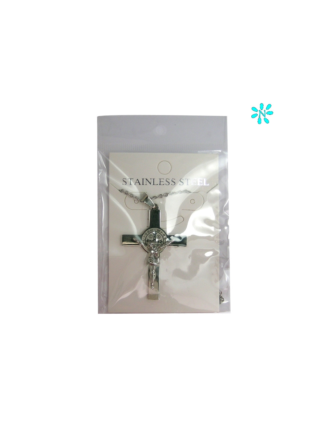 Cruz San Benito Acero 45X35mm Con Cadena De Acero