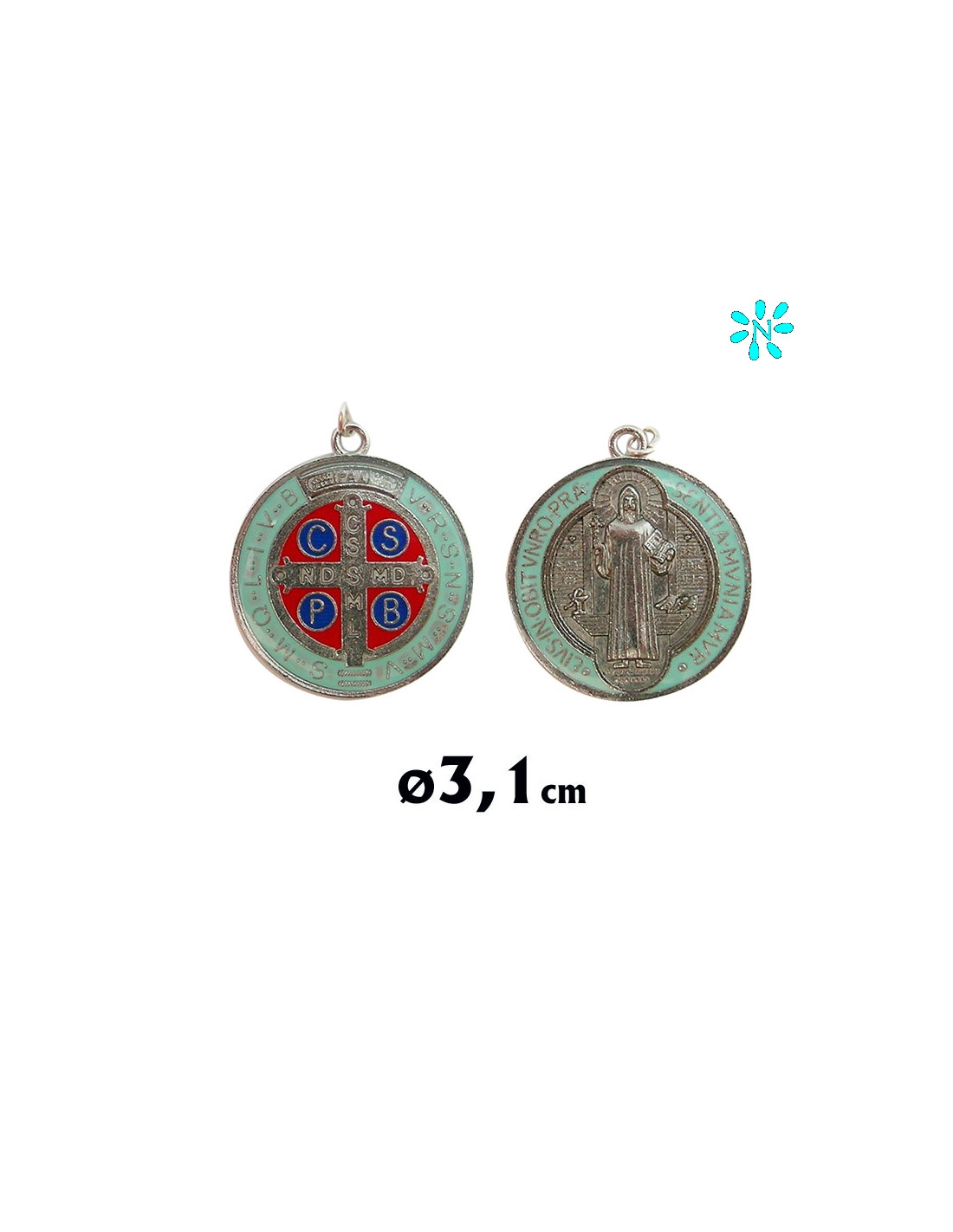 Medalla Metal San Benito A Color 31Mm Niquel Con Esmalte Cristal A Dos Caras