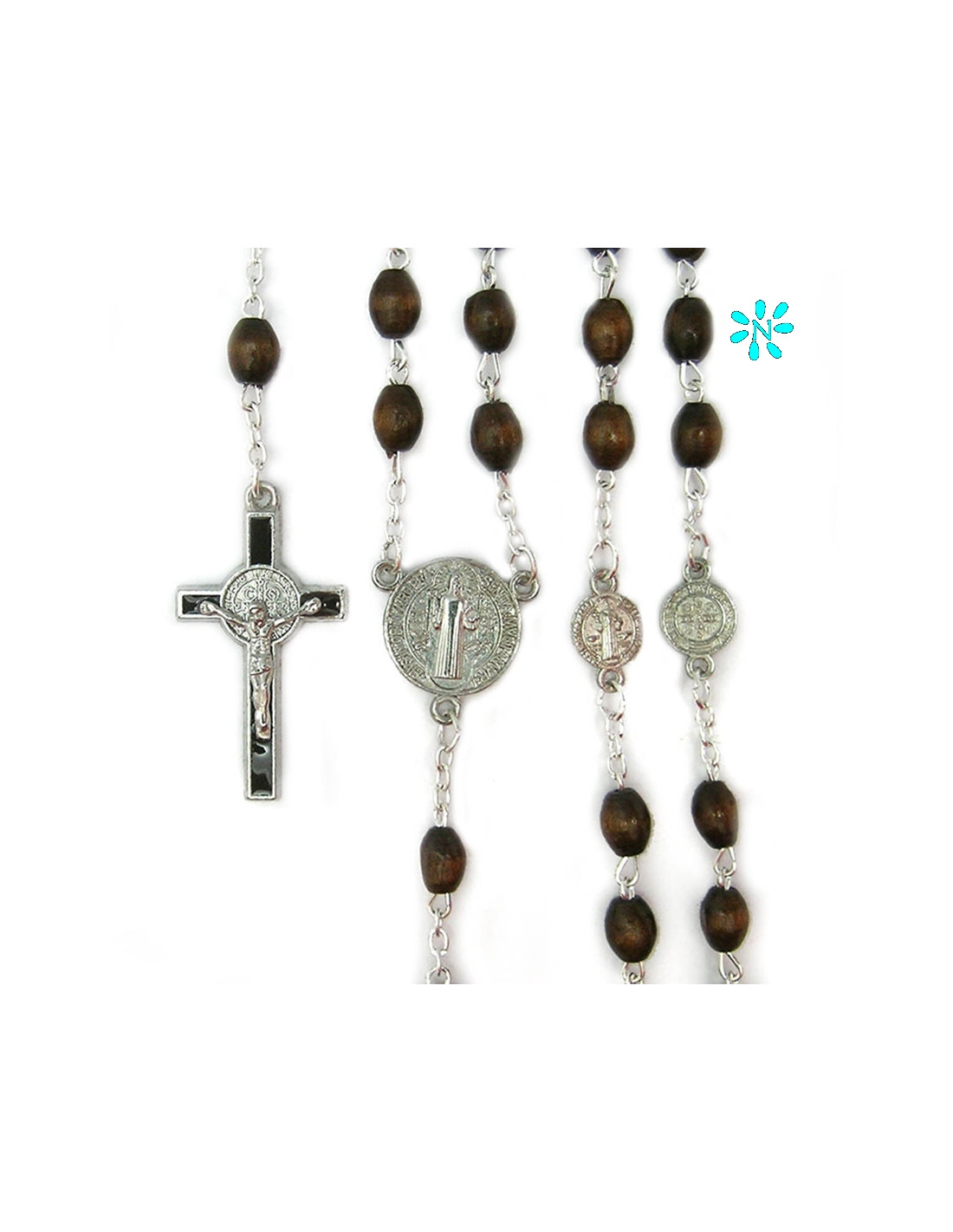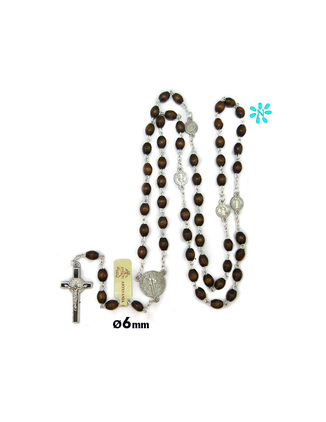 Rosario Madera Marron Oval San Benito 6Mm Maria Y Paters Medallas Redondas