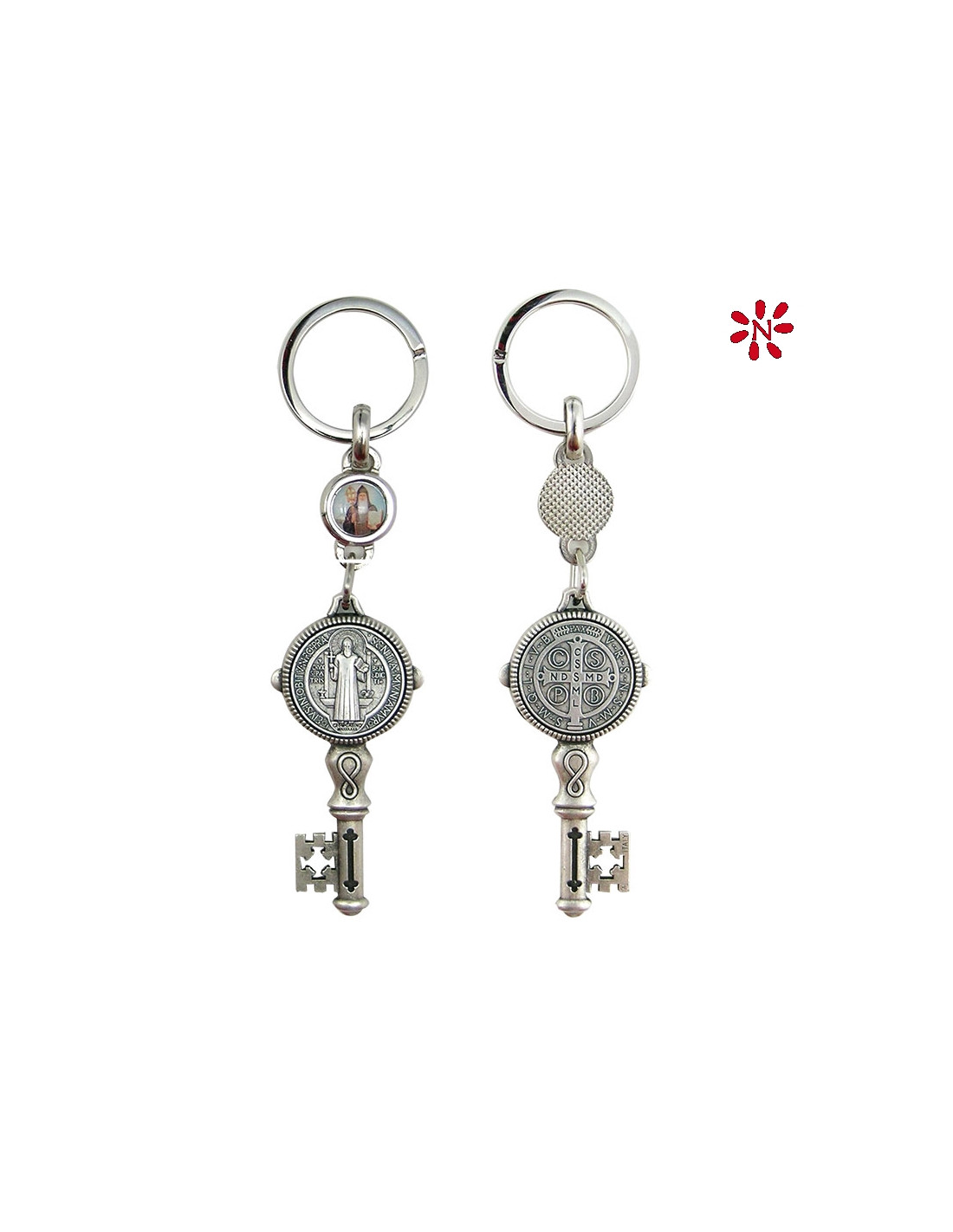 Llavero Metal Llave Antigua San Benito Con Foto En Anillo Superior Para Personalizar
