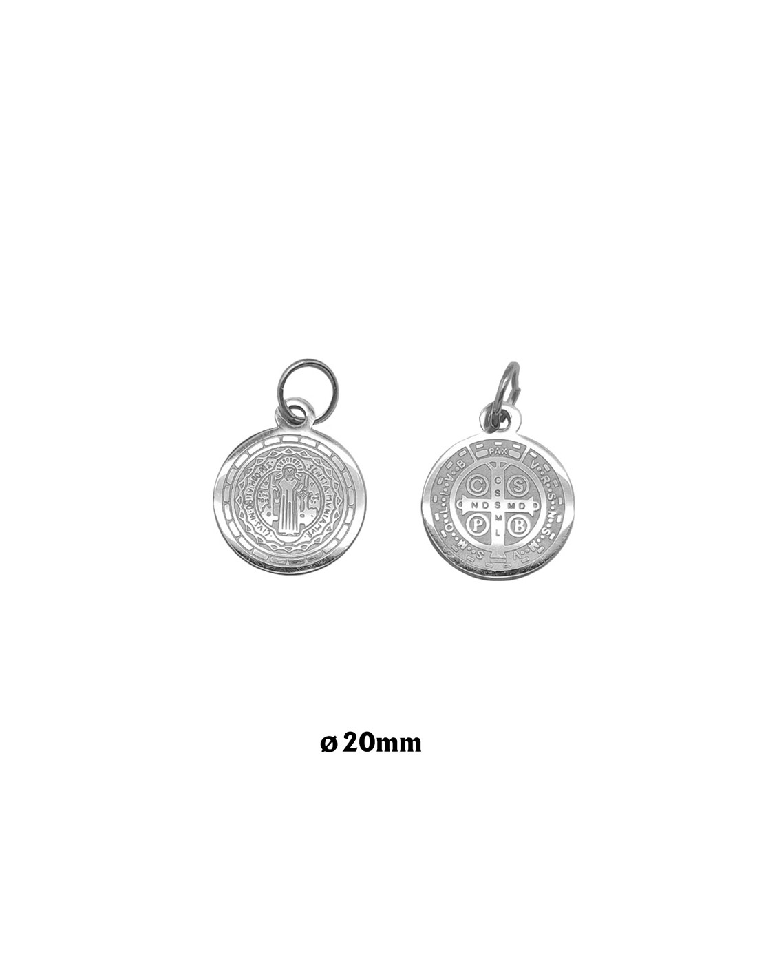 Medalla San Benito Acero 20Mm Grabada A Laser Con Anilla