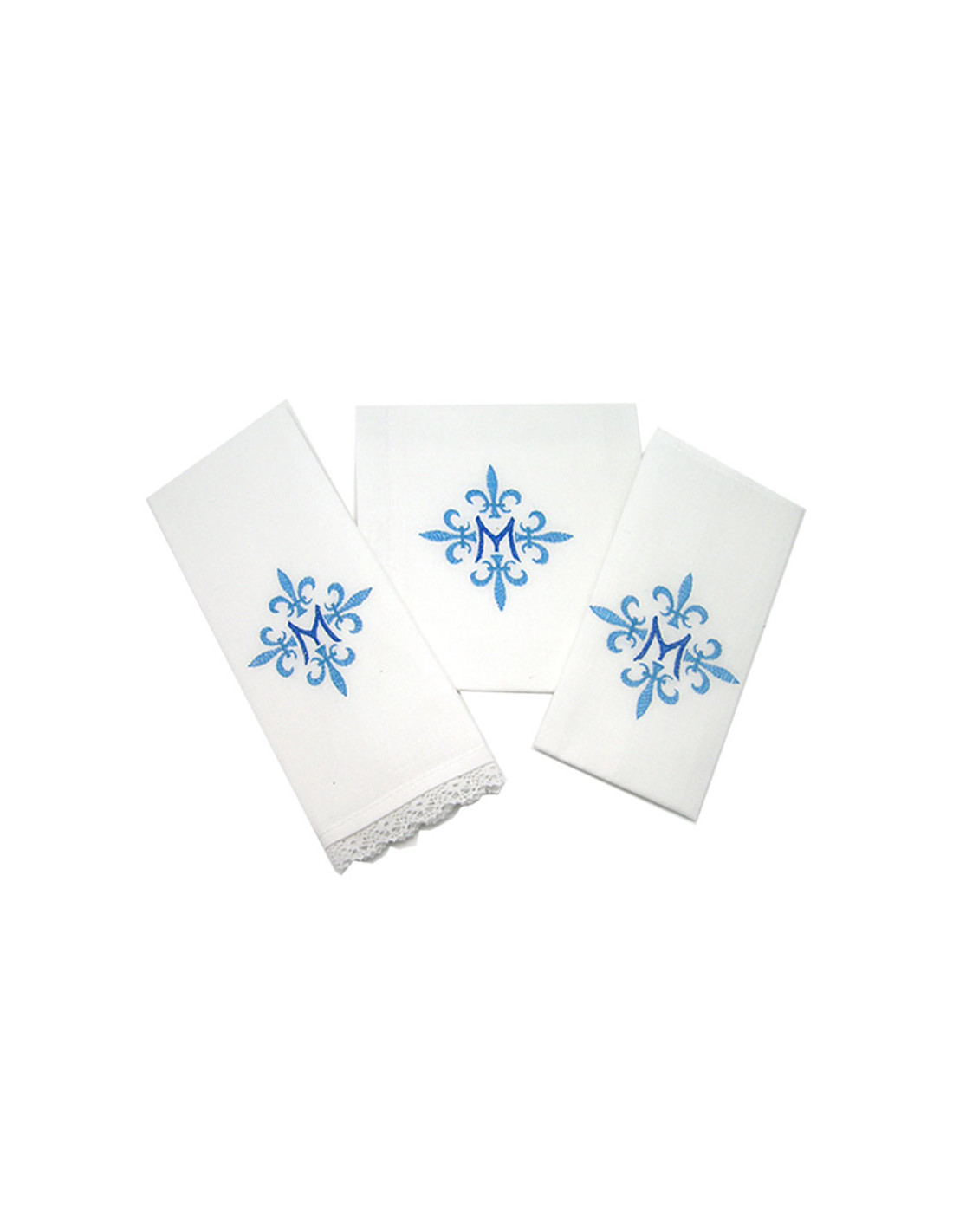 Juego De Altar Bordado 3 Piezas Signo Mariano Con Flor De Lis