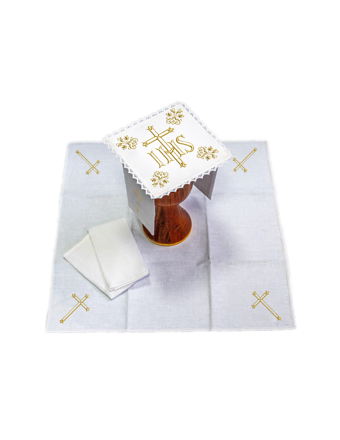 Juego De Altar Lino Bordado Cruz Grande Sdm18 Con Jhs