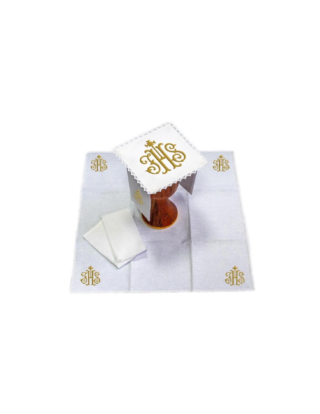Juego De Altar Lino Bordado Jhs Cruz Superior Sdm004