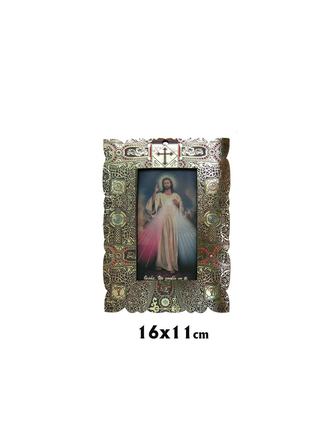 Capilla Rectangular 11X16cm Jesús Misericordioso Brillo Oro Marco Decorado Estilo Bizantino