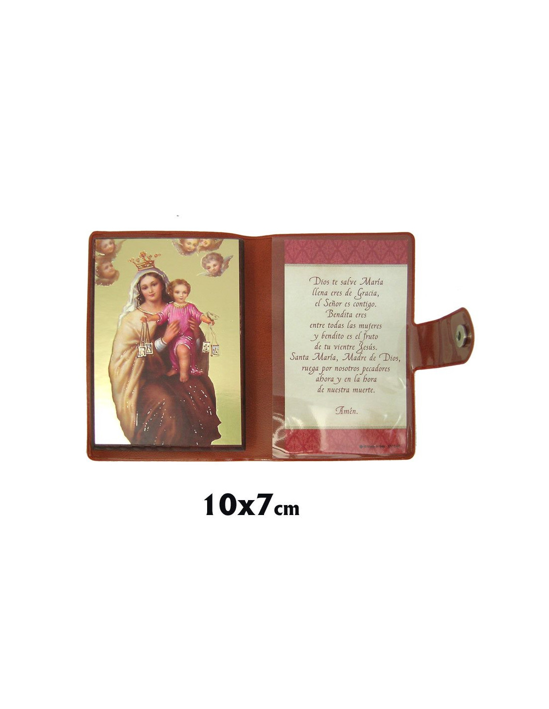Icono Tabla De Viaje Oro Brillo Virgen Carmen 10X7cm Con Funda Y Cierre