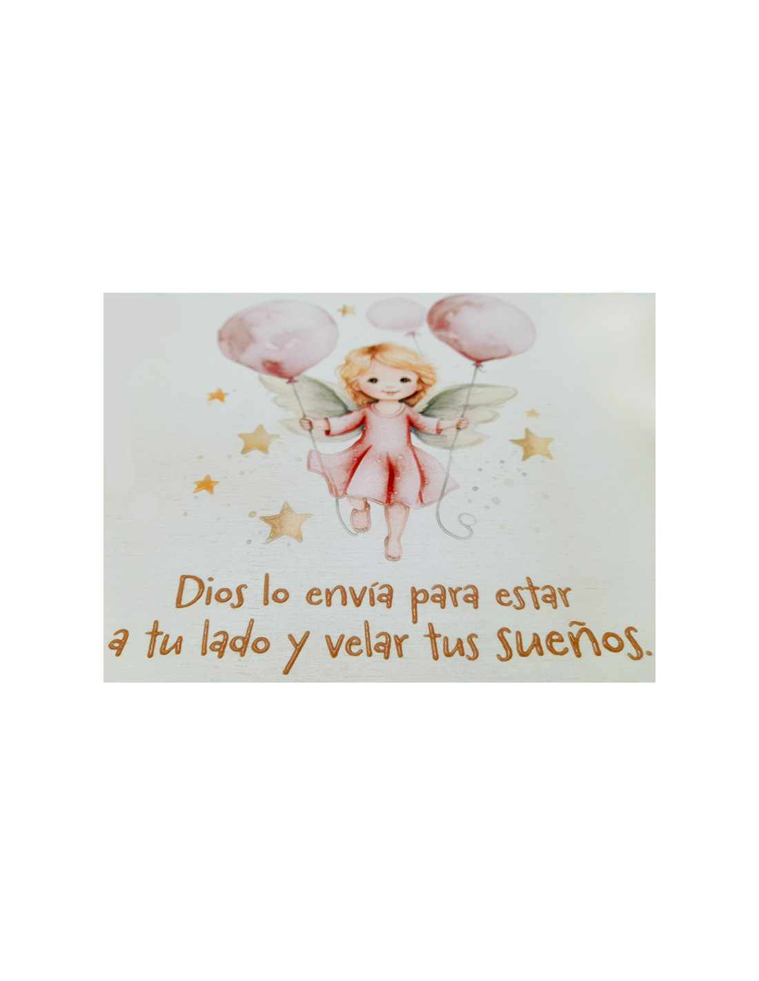 Cuadro Infantil Angelita Con Globos 19X19cm Blanco Acabado Relieve Y Caja