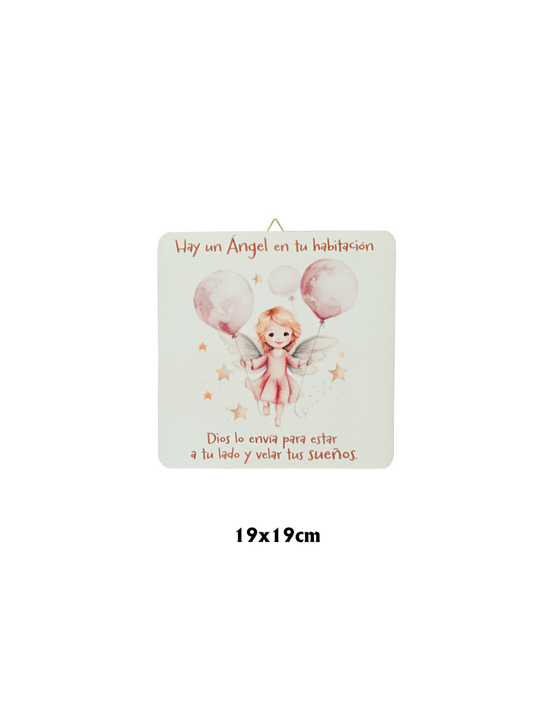 Cuadro Infantil Angelita Con Globos 19X19cm Blanco Acabado Relieve Y Caja