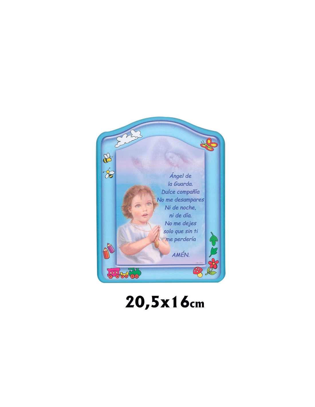 Tabla Madera Oracion Angel De La Guarda 20.5X16 Azul