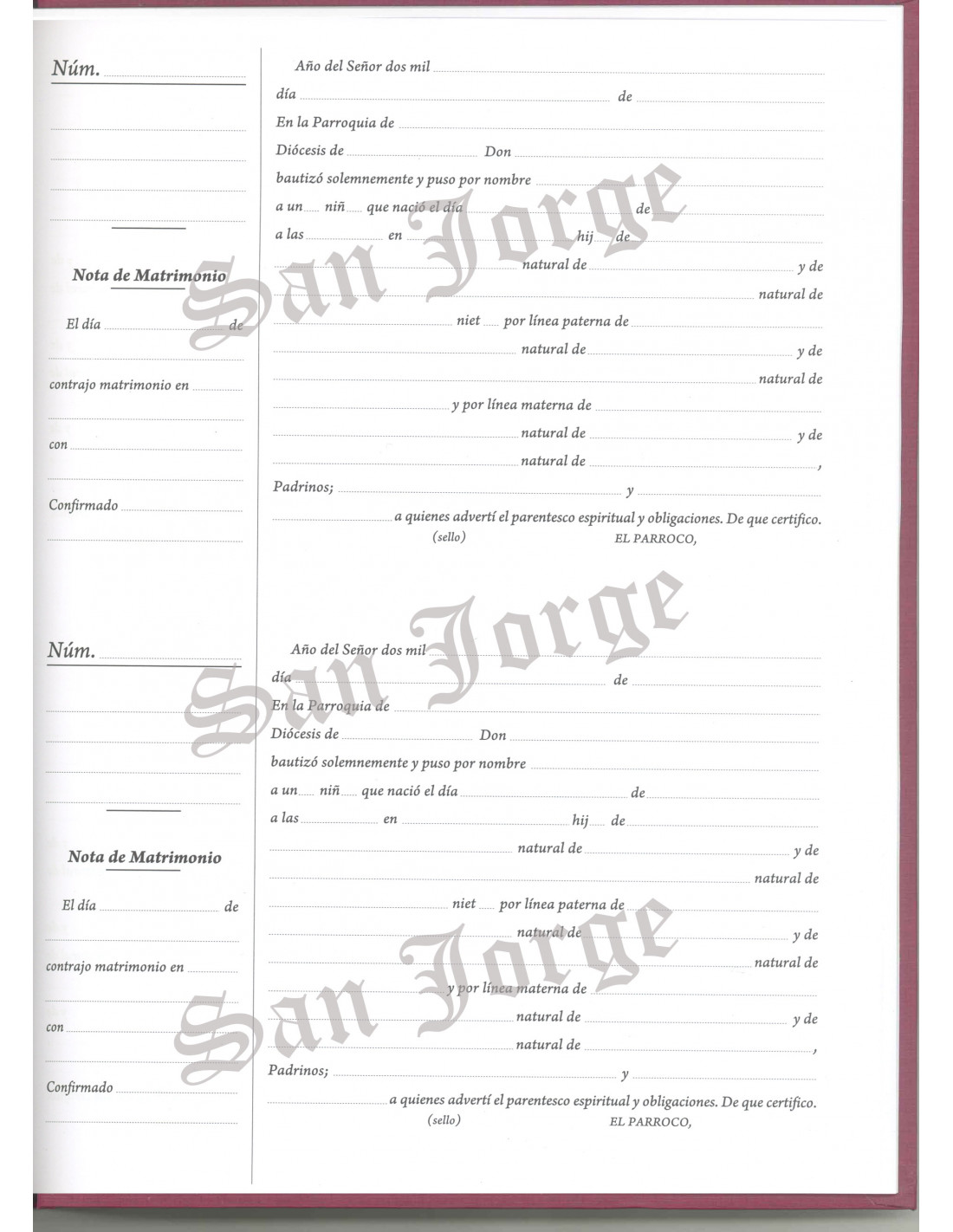Libro Registro Bautismo